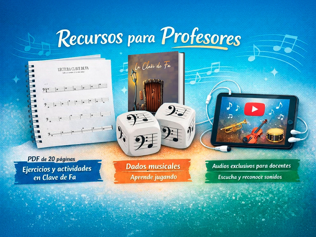 • PDF de 20 páginas con ejercicios y actividades centradas en la clave de Fa, listas para usar en clase.